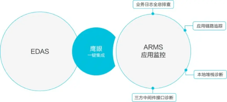 • 和Aliware无缝集成:新推出的ARMS应用监控将和已有的Aliware如EDAS平台将无缝集成,用户可以在EDAS上一键接入ARMS,后台Agent植入完全透明化。