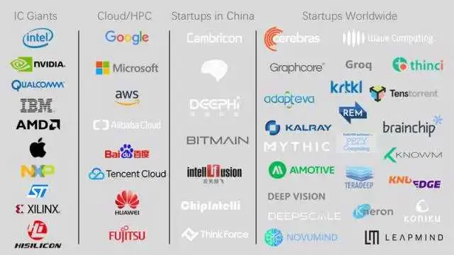 抛开各种烟雾和泡沫,我们逐渐在这个领域初创公司也看到一些“龙头企业”。比如国内的寒武纪、地平线、深鉴科技和比特大陆,都在 2017 年发布了自己的产品;美国的 Cerebras、Wave Computing、Graphcore 和 Groq(前 GoogleTPU 主要设计者创立),或有雄厚的实力,或有自己特色的技术和比较清晰的产品。在 2017 年,国内也出现一些依托应用开发芯片的 AI 初创公司,这些公司大多以应用牵头研发芯片。我也预期在 2018 年会看到更多这样的情况。当然,很多初创公司并没有公开自己的信息,不排除正在憋大招的可能性。