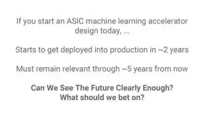 最后,是变局的可能。从整体上来讲,AI 整体上在 2018 年会怎么发展是一个大家都非常关注的问题。继续高速增长,还是平稳发展,又或者会遇到问题高开低走?不管是哪种情况,AI 芯片必然会受到大势的影响。比较特殊的是,芯片研发的周期大约在 9 到 18 个月左右,这比软件应用的开发和更新周期要长的多。再加上一些滞后效应,芯片的发展很难和算法和应用的发展节奏同步。芯片开发中一个比较可怕的问题就是未来的不确定性。相对来说,一个可预期的平稳增长的环境是最有利于芯片研发的,可以让芯片设计者能够更好的规划产品和协调资源。另一种变局情况是,算法层面发生巨大的变化,也就是技术上的不确定性。这几年最成功的 AI 算法就是基于神经网络的深度学习。这正是目前 AI 芯片在需求上的基础,也决定了现在大部分 AI 芯片都是以加速这一类算法为目标的。如果基本算法需求发生变化,会对 AI 芯片的设计产生很大的影响。比如,目前已经有一定应用基础的低精度网络,也就是在 inference 中使用非常低的精度,甚至直接使用二值网络。如果这种 Inference 得到广泛应用,现在的芯片架构则可能得要重新考虑。再比如,如果 Hinton 大神的 capsule networks 得到实用,也可能会需要新的芯片架构来支持。毕竟 AI 领域现在发展很快,所以大家也都必须要时刻盯着应用和算法层面最新的进展。我们也要随时问自己下面的问题(来自 Jeff Dean 在 NIPS2017 的演讲)。