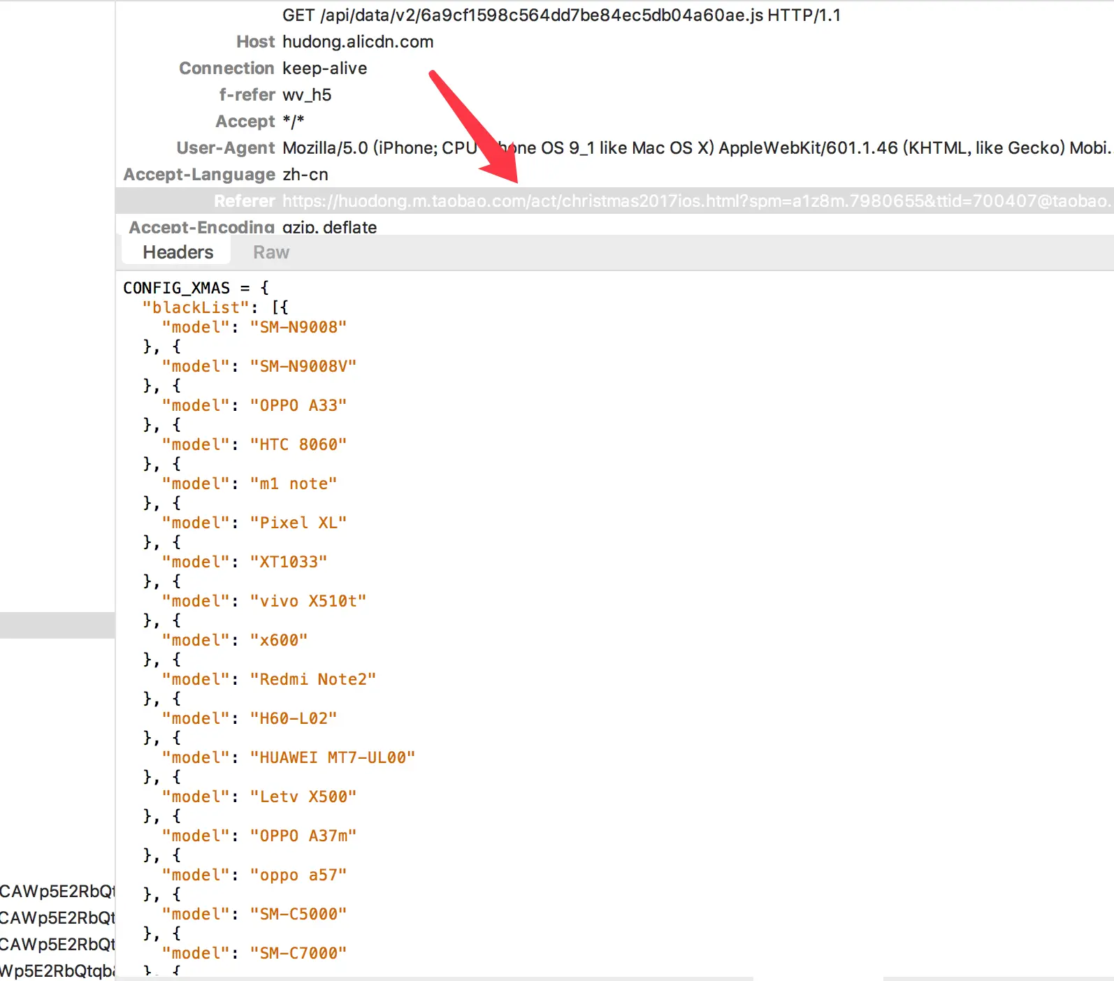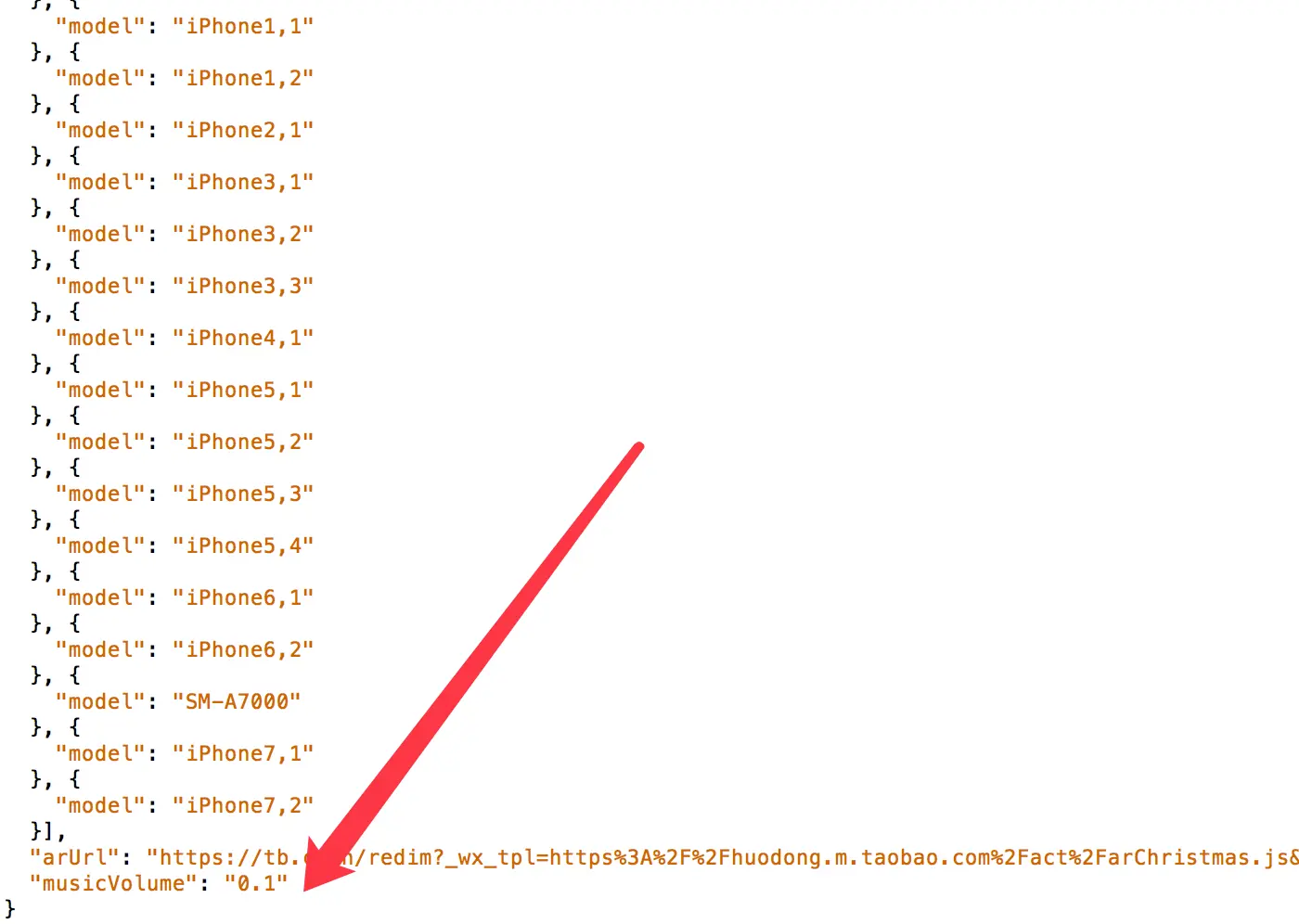 我看到了musicVolume这个字段,我猜测这个应该就是控制首页背景音乐的的变量。我们再看上面的这些设备名称,他们在blackList字段里面,黑名单?iPhone7,2就是第7代iPhone,也就是iPhone6 plus。我再看arUrl这个字段,AR?我断定这个就是首页右边的那个悬浮的圣诞树。因为那个圣诞树我点击后会跳转到一个AR技术的页面活动。我使用iPhone7和iPhone5s分别去打开淘宝客户端,果然在黑名单里的设备是看不到这颗圣诞树的。也就是黑名单里的设备是不支持AR技术的。具体可以看下苹果关于ARKit的介绍,必须是A9处理器以上哟! 传送门->点我
