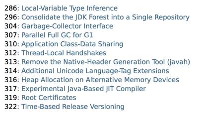 Oracle Java 平台组首席架构师 Mark Reinhold 在博客上介绍了有关 Java 未来版本的一些想法(你能接受Java 9的下一个版本是Java 18.3吗?)。他提到,Java 计划按照时间来发布,每半年一个版本,而不是像之前那样按照重要特性来确定大版本,如果某个大的特性因故延期,这个版本可能一拖再拖。 当时,Mark 也提出来一种基于时间命名版本号的机制,比如下一个将于 2018 年 3 月发布的版本,就是 18.3,再下一个版本是 18.9,依此类推。 不过经过讨论,考虑和之前版本号的兼容等问题,最终选择的命名机制是: $FEATURE.$INTERIM.$UPDATE.$PATCH $FEATURE,每次版本发布加 1,不考虑具体的版本内容。(之前的主版本号部分)2018 年 3 月的版本是 JDK 10,9 月的版本是 JDK 11,依此类推。 $INTERIM,中间版本号,在大版本中间发布的,包含问题修复和增强的版本,不会引入非兼容性修改。 整体而言,Java 10 并没有包含很多新特性。