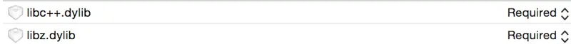 - 如果是Xcode 7.0之后的版本,需要添加libc++.tbd、libz.tbd;