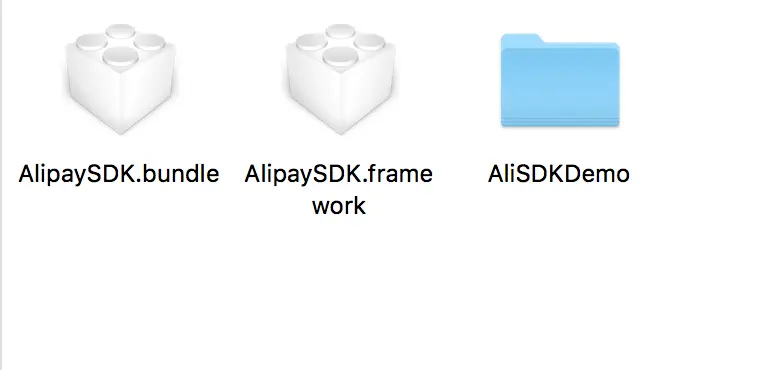 在支付宝的接入文档中,是将生成一个订单这步放在客户端来做了,但这个最好是 放在服务器端来做。 后台生成订单然后拼接,签名,然后服务器端直接给客户端传一个加密签名过的参数就可以了,这样比较安全。 所有的订单信息,商户信息等都掌握在自己的手中,这样的话APP端就不怕被拦截数据,并且调用起来也就特别简单了,只需要调用支付的接口。 如果只需要发送订单和处理支付返回结果,只需要添加AlipaySDK.bundle和AlipaySDK.framework这两个就行了,下载的SDK中很容易发现。 快捷支付方法是这个: