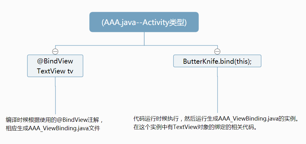 我们在上面的例子中可以看到,在生成的AAA_ViewBinding.java中有了对我们的TextView进行赋值。