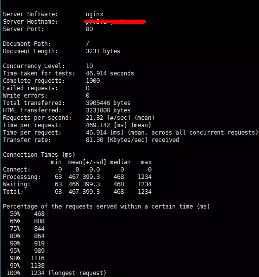 这里是使用Apache的ab测试工具