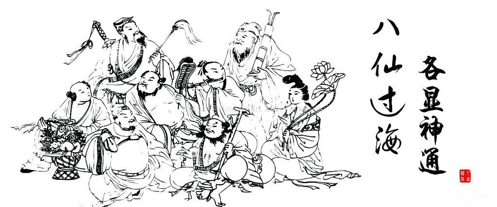 韩湘子将玉箫往水中一掷,化作一根浮木,站在上面过海...