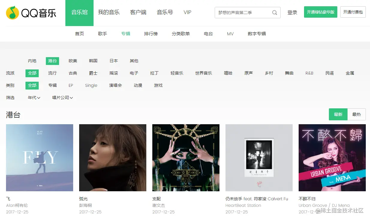 打开开发者工具(按F12或CTRL+SHIFT+I),然后任意选一张专辑点击