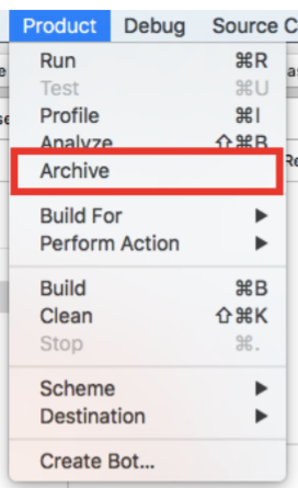 4、Archive在线打包,在真机状态下选择Product——>Archive,如果不是真机状态下,Archive会是灰色不可用的)。