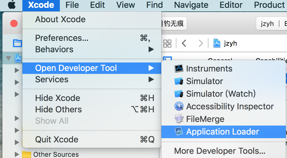 - 5、提交构建版本.这里我们使用 Application Loader, 这个要提前下载.没有的话就去下载一下,安装后可以看到.