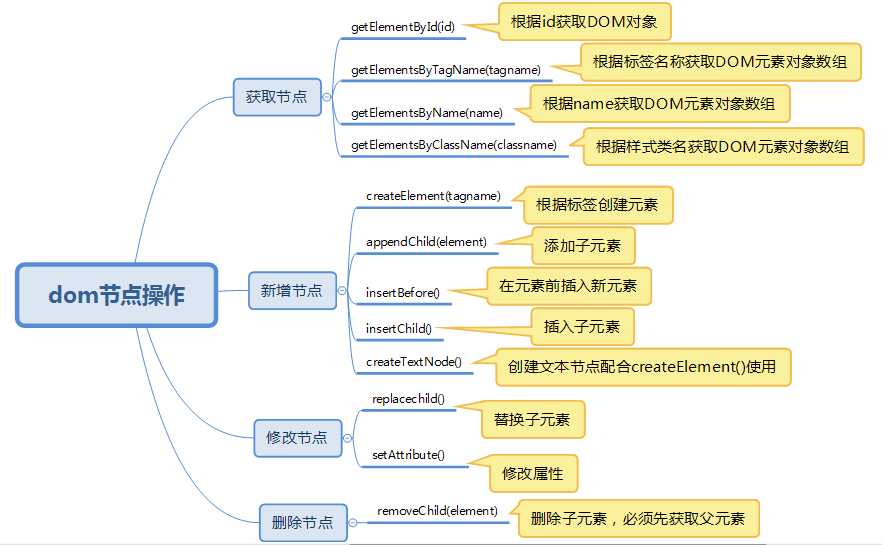 对dom节点的操作分为:获取节点(定位),创建新的节点,修改节点,删除节点。我们通俗称(增删改查),在适当的实际执行这些操作,能给人动态的感觉(^_^)