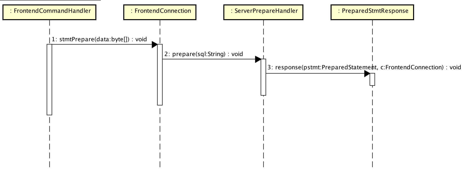 MyCAT 接收到请求后,创建 PreparedStatement,并返回 statementId 等信息。Client 发起 SQL 执行时,需要将 statementId 带给 MyCAT。核心代码如下: