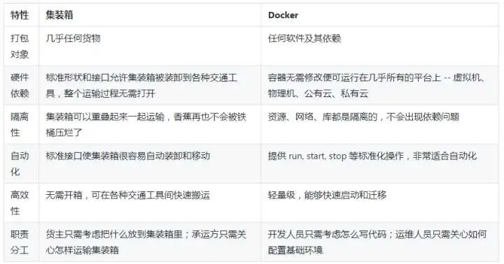 我们可以看看集装箱思想是如何与 Docker 各种特性相对应的。