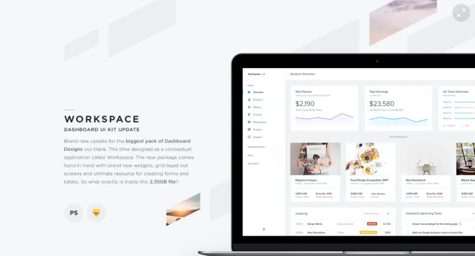这款由Sketch和Marvelapp创建的UI Kit总共包含34个新文件和15屏黑白版本的UI元素,包括表格,图形,按钮,文本样式等等。设计师非常用心的展示了设计过程中的每一个步骤,包括整体介绍,原型设计,屏幕展示到所有的设计元素。虽然不是免费的UI kit,但对于真正想要学习如何设计的人来说是非常有用的。