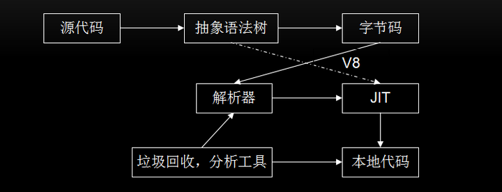 V8更加直接的将抽象语法树通过JIT技术转换成本地代码,放弃了在字节码阶段可以进行的一些性能优化,但保证了执行速度。在V8生成本地代码后,也会通过Profiler采集一些信息,来优化本地代码。虽然,少了生成字节码这一阶段的性能优化,但极大减少了转换时间。