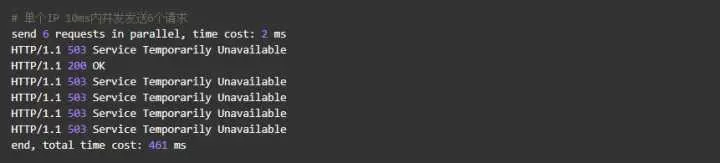 单个IP 10ms内并发发送6个请求,结果如下: