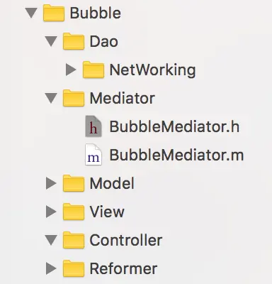 这个架构的好处 1.整体是分业务模块设计的,业务与业务之间没有直接的耦合,因为中间多了层Mediator层。所以说业务的复用和迁移相对来说比较简单,对于今后如果想要模块化也可以进一步迭代。如果还需要解耦合,就用runtime和dictionary传参的方式,但是这样的成本相对较高,对于API直观程度不够。 2.整体是MRVC设计,所以是轻量级的V层和映射级的Model层,中间业务都基本处于Reformer层。如果需要响应式编程的话,可以在Reformer层进行设计修改。 3.少用继承,多用组合。对于代码迁移有很大的方便性,拔出萝卜带出泥的这种现象会很少。 4.网络层接口的分模块可以和后台架构保持一致,对于整体架构都比较好。