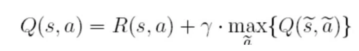 在上面的公式中,S表示当前的状态,a表示当前的动作,s表示下一个状态,a表示下一个动作,λ为贪婪因子,0<λ<1,一般设置为0.8。Q表示的是,在状态s下采取动作a能够获得的期望最大收益,R是立即获得的收益,而未来一期的收益则取决于下一阶段的动作。