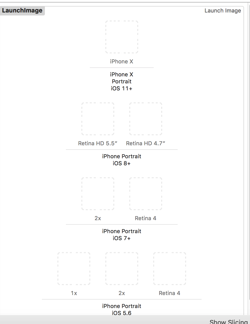 朋友是做混合开发的, 今天问了我iOS启动图出现的一个bug: 启动时Launch Image 出现偏移。 我从没遇到过, 提供了很多思路, 最后他找到问题症结并解决了。 最后发现是 Launch Image 名称的问题, 就是刚启动时显示的是iPhoneX的Launch Image, 后来代码里又设置了一遍启动图, 变成iPhone5的Launch Image了。 陪他解决的过程中我发现自己关于Launch Image这里的设置有些不严谨, 现在整理一下。