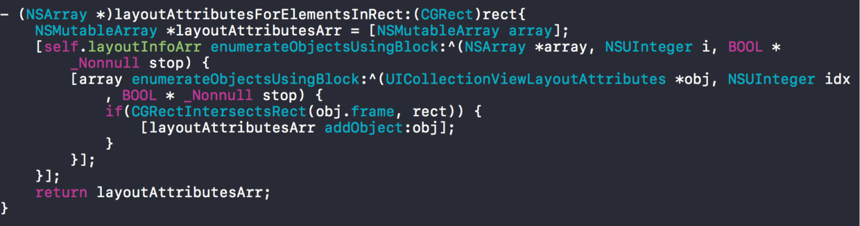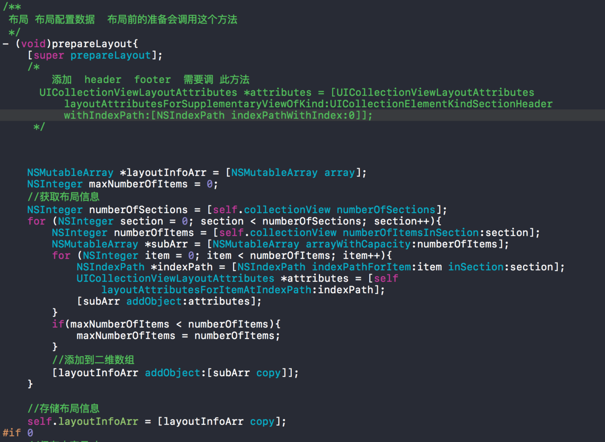 写一个我们自己的类继承UICollectionViewFlowLayout。然后需要实现四个方法: