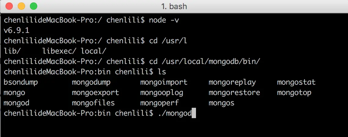 MongoDB 下载地址: https://www.mongodb.com/download-center?jmp=nav#community nodejs下载地址: https://nodejs.org/en/ 本文重点记录在mac下安装mongodb 本机环境:系统=>MAC OS 10.12 nodeJS=>6.9.0 Mongodb=>3.2.5