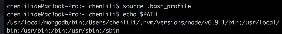 echo 'export PATH=/usr/local/mongodb/bin:$PATH'>>~/.bash_profile