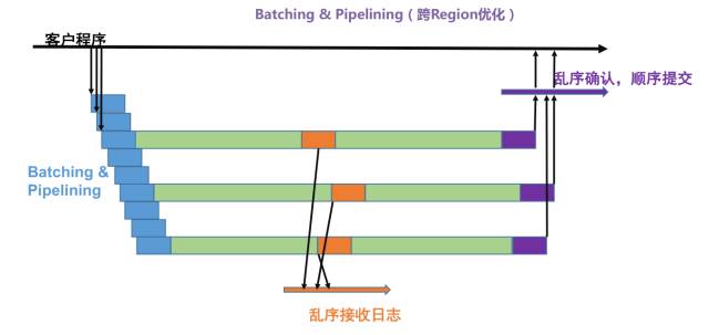 X-DB 核心技术之二: Batching & Pipelining。X-DB在事务提交时,必须保证日志在数据库节点的多数派收到并提交,这是保证数据强一致基础,由于事务在提交时必须需要跨网络,这一定会导致延时增加,要保证高延时下的吞吐是非常困难的。Batching & Pipelining技术保证尽可能批量提交,数据可以乱序接收和确认,最终保证日志顺序提交。可以在高延时的情况下,保持很高的吞吐能力。