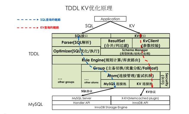 X-KV是基于官方MySQL Memcached plugin的增强,今年我们做了大幅度的改进,支持更多数据类型,支持非唯一索引、组合索引,multi get功能,还支持Online Schema change。最大变化是通过TDDL支持SQL转换。对于业务方,X-KV优势是超高读取性能,数据强一致,减少应用响应时间,降低了成本,同时因为支持SQL,应用可以透明迁移,使用成本大幅降低。