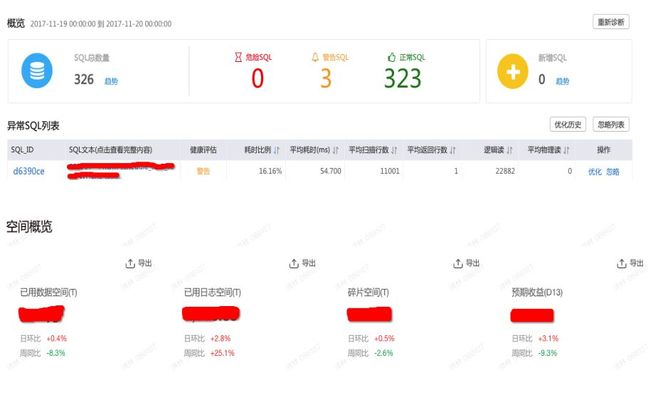 CloudDBA在今年双11也做了一些探索,通过对全量SQL以及监控数据的分析,我们实现了SQL自动优化(慢SQL调优)、空间优化(无用表无用索引分析)、访问模型优化(SQL和KV)和存储空间增长预测等功能。
