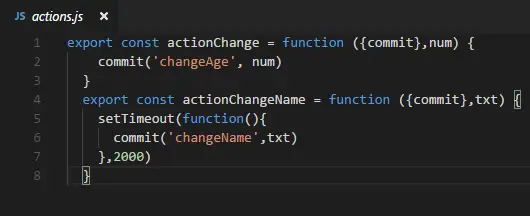 actionChangeAge: "actionChangeAge",//Action提交的是 mutation,而不是直接变更状态,Action 可以包含任意异步操作。