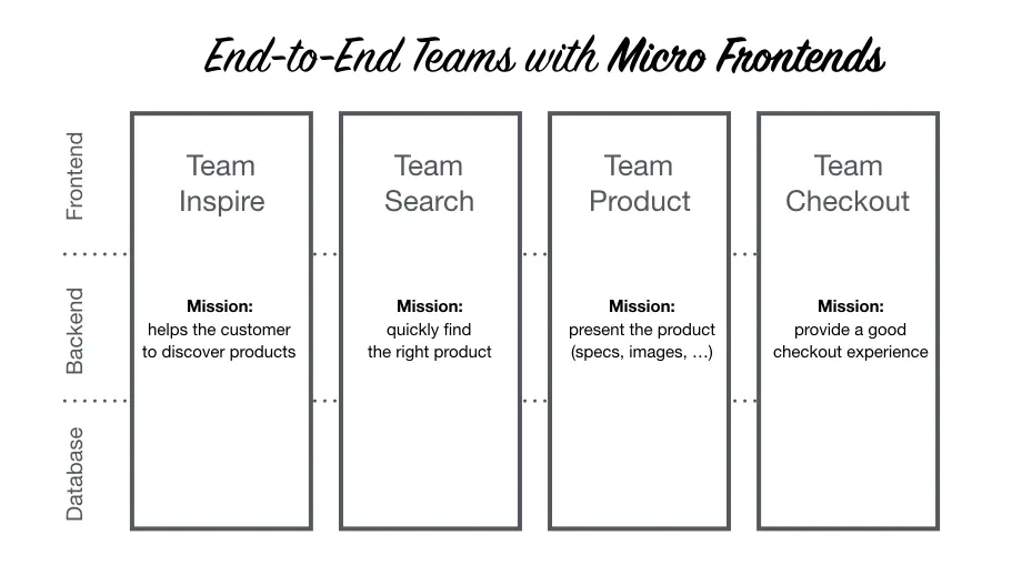 - Web 应用程序被分解成独立的特征,并且每个特征都由不同的团队拥有,前端到后端。这确保了每个功能都是独立于其他功能开发,测试和部署的。