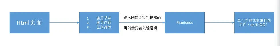 从RDS中读取回复过的页面,遍历每个页面的节点、属性等获取下载链接。这里的遍历比较复杂,需要各种异常和不规则的处理。提取到的链接可能为网盘链接,附件链接等等。论坛上的附件大多时百度网盘的短链接,并且很多都需要输入提取码,我们实现了这个过程的自动化。可以在帖子的页面提取到百度网盘链接,并且获取到对应的提取码;然后,使用NodeJs+PhathomJs的方式实现了真实下载地址的提取。由于百度网盘进行了限制速度,所有我们后续又支持了断点下载的方式,支持更高的容错。