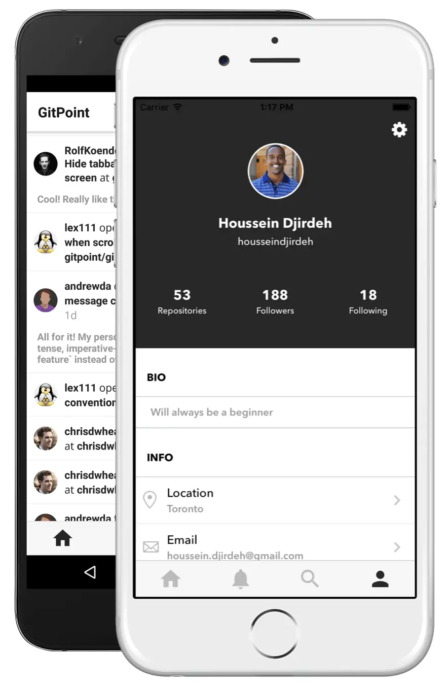 10、git-point:基于 React Native 开发的非官方开源 GitHub 客户端,功能丰富包含查看项目和用户信息、接收通知、管理 Issues 和 PR。支持 Android、iOS,选择对应的客户端下载使用
