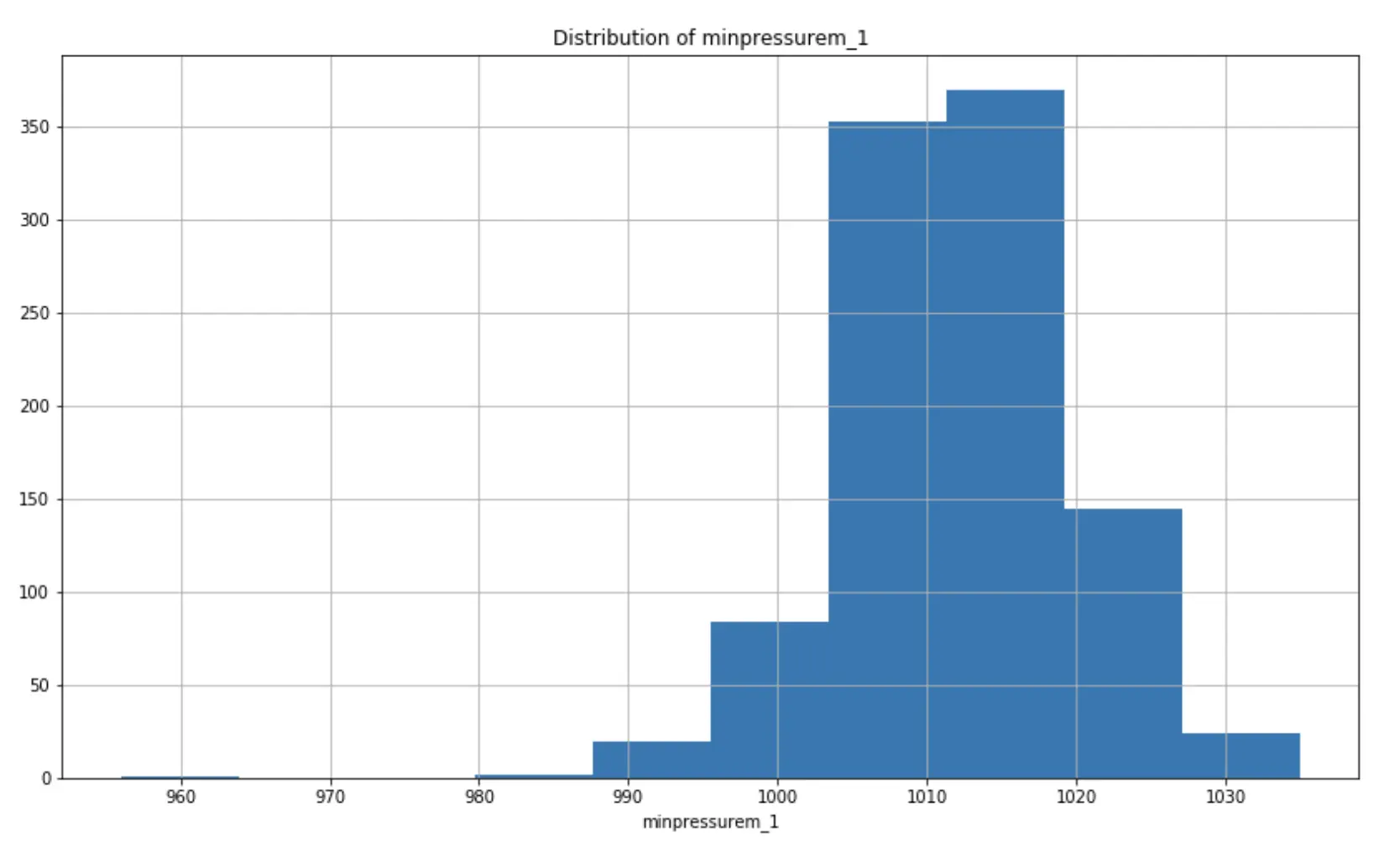 第一组特征看起来与最大湿度有关。 观察这些数据,我可以看出,这个特征类别的异常值是非常低的最小值。这数据看起来没价值,我想我想仔细看看它,最好是以图形方式。 要做到这一点,我会使用直方图。