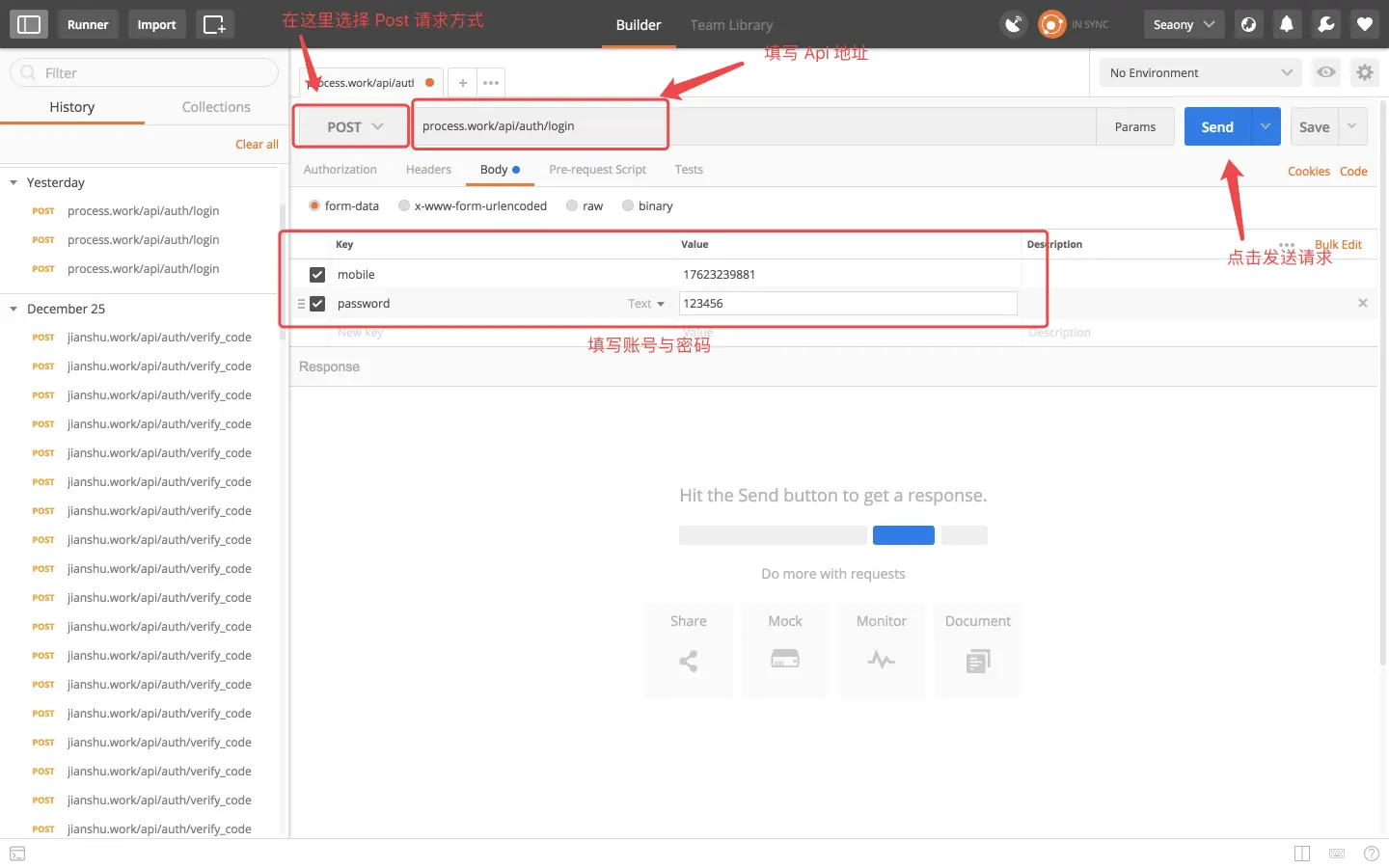 执行以下命令来创建一个测试用户,我这里的用户名是用的是手机号码,你可以自行替换为邮箱。别忘了设置命名空间哟: