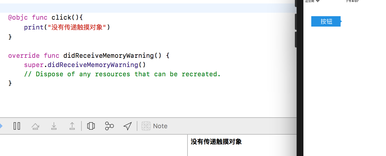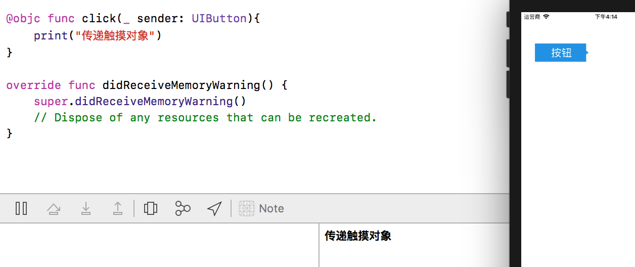 print("传递触摸对象")