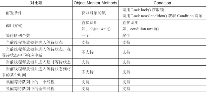 Condition底层的线程等待也是使用的LockSupport的park方法。它对interrupt方法不敏感,而wait方法遇到interrupt就抛异常。 直接来张图: