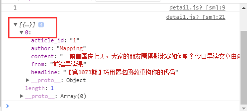 - 当页面跳转到详情页时,在 detail.js 中使用 filter 把 acticle_id 等于上一页面文章 id 的数据赋值给 datas,再对其进行操作,就实现了数据的动态绑定。