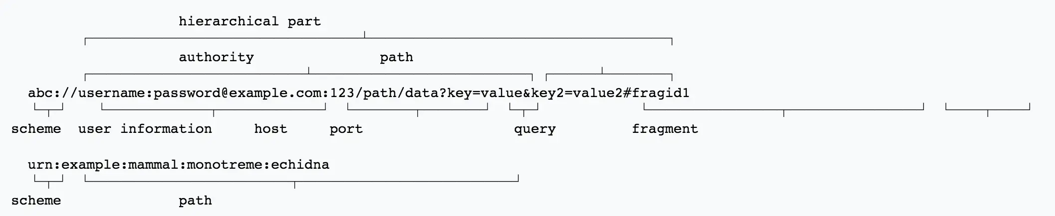 scheme:[//[user[:password]@]host[:port]][/path][?query][#fragment]