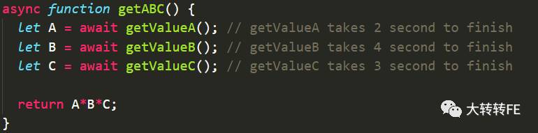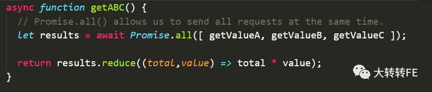 此时我们需要用Promise.all()将异步调用并行执行,而不是一个接一个执行,如下所示: