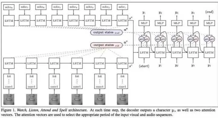 这个数据集中包含 10 万个带有音频和视频的句子。模型:LSTM 处理音频、CNN + LSTM 处理视频。这两个状态向量最终反馈到 LSTM,从而生成结果(字符)。