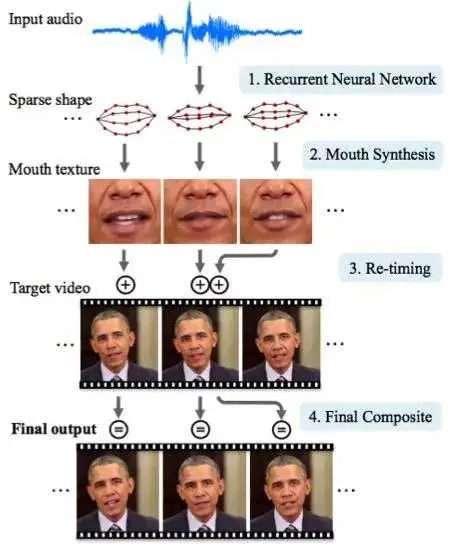 华盛顿大学对奥巴马总统唇部的运动进行了一项认真的研究。之所以选择他的视频,据说是因为这位总统的演讲视频在网上数量众多,一搜一大把(17 小时的高清视频)。