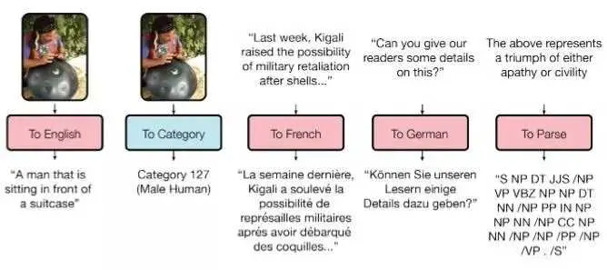 研究人员已经训练可以执行来自不同领域(文本、语音和图像)八个任务的模型。例如翻译不同语言,文本解析,以及图像和声音识别。