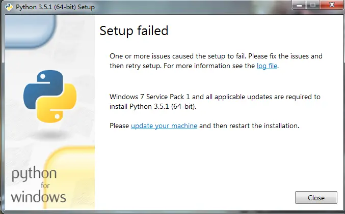 Windows 7 Service Pack 1 and all applicable updates are required to install Python 3.6.3(64-bit)