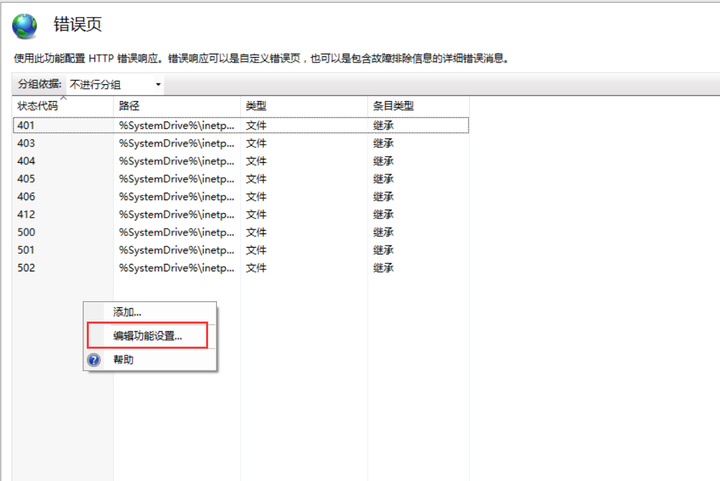 于是乎开始有点郁闷了,这种问题原来怎么没遇到过了,代码“貌似”没什么大问题啊,如果有问题,本地应该也不能得到才对啊。于是乎分析,这可能不是我们代码的问题,而是IIS给我做了一层统一的异常处理,我们只需要将这层统一的异常处理去掉就行了啊。道理是这么个道理,可是如何去实现呢。于是乎把IIS的各个功能都试了个遍,最后的谷歌的一篇帖子里面找到了一些帮助。解决方案如下。