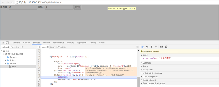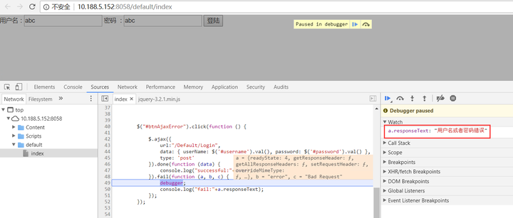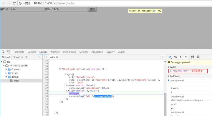 密码 :<input type="text" id="password"/> <button id="btnAjaxError" type="button">登陆</button>
