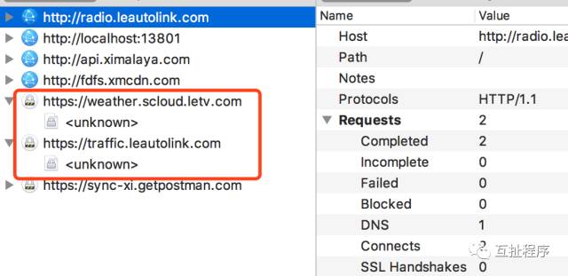 Structure 视图将网络请求按访问的域名分类。