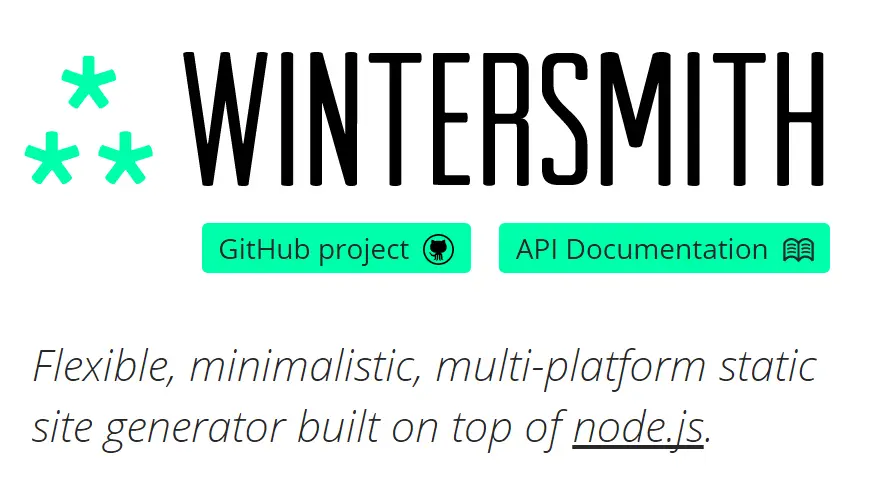 Wintersmith 是一款静态站点生成器。它包括了内容(markdown,less,script 等),使用插件和输出静态网页(html,css,image 等等)来转换。它附带有 markdown 插件和 jade 模版。