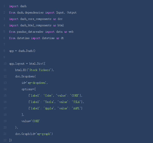 Dash 是几年发布的用于构建网页应用(特别针对于数据可视化的高效利用)的纯 Python 开源库。它建立在 Flask、Plotly.js 和 React 的顶部,可以提供数据处理的抽象层次的接口,从而让我们不需要再学习这些框架,进行高效的开发。该 app 可在浏览器上使用,以后将发布低延迟版本,以在移动设备上使用。