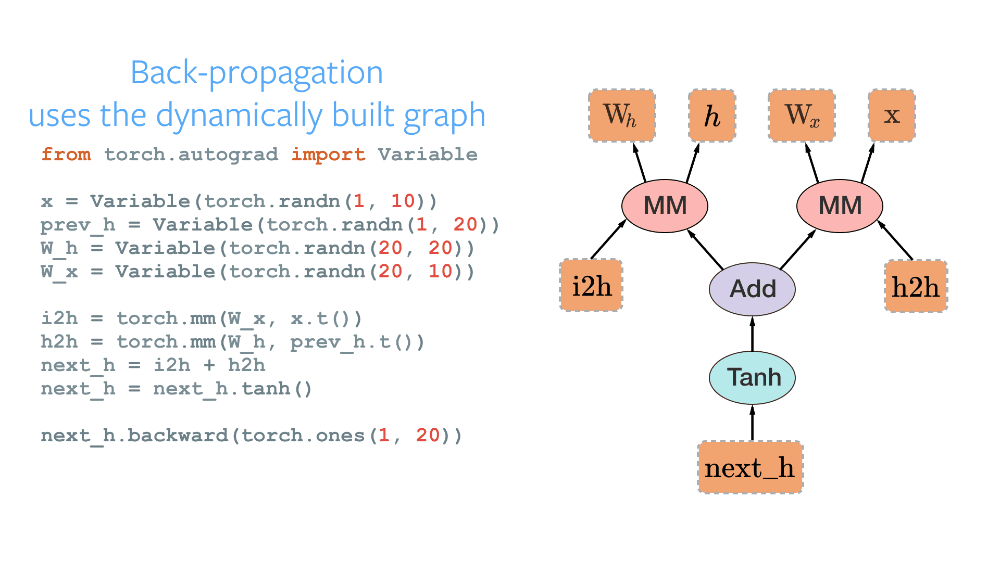 最值得注意的是,由于其实现了全新的动态计算图(Dynamic Computational Graph)范式,PyTorch 成为了众多研究者的首选框架之一。当使用其他框架比如 TensorFlow、CNTK、MXNet 编写代码时,必须首先定义一个称之为计算图的东西。该图指定了由我们的代码构建的所有操作与数据流,且它在构建完后会进行编译和利用框架潜在地优化,因此静态计算图能很自然地在 GPU 上实现并行处理。这一范式被称为静态计算图,它很棒,因为你可以利用各种优化,并且这个图一旦建成即可运行在不同设备上(因为执行与构建相分离)。但是,在很多任务中比如自然语言处理中,工作量经常是变动的:你可以在把图像馈送至算法之前把其大小重新调整为一个固定的分辨率,但是相同操作不适用于语句,因为其长度是变化的。这正是 PyTorch 和动态图发挥作用的地方。通过在你的代码中使用标准的 Python 控制指令,图在执行时将被定义,给了你对完成若干任务来说很关键的自由。