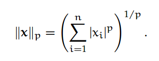 若给定 n 维向量 x 和一个整数 p > 1,我们可以定义向量 p-范数为: